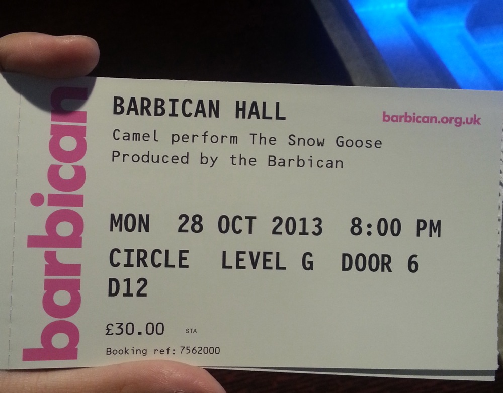 Seguia lendo o site oficial do Camel, acompanhando atentamente os relatos de Susan Hoover, esposa e empresária de Latimer, sobre sua saúde, quando, em março de 2013, surgiu o anúncio de um show em outubro, no Barbican Centre, em Londres. Foi totalmente inesperado! Mais inesperado ainda foi o tema do show: iriam tocar o Snow Goose completo, álbum clássico da década de 70 e um dos meus favoritos!